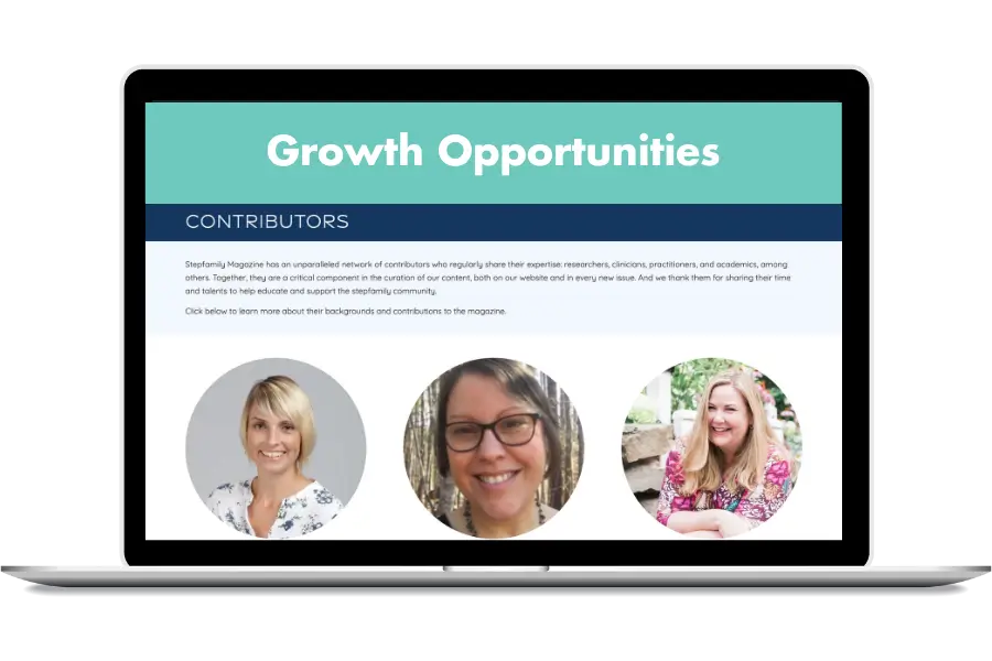 These opportunities include roles as a coach or mentor inside The Stepfamily Circle; speaker at The StepmomSummit; writing contributions for Stepfamily Magazine; or interviews on The Stepfamily Diaries podcast — all offered through thoughtful, invitation-based consideration as your confidence and experience grow.